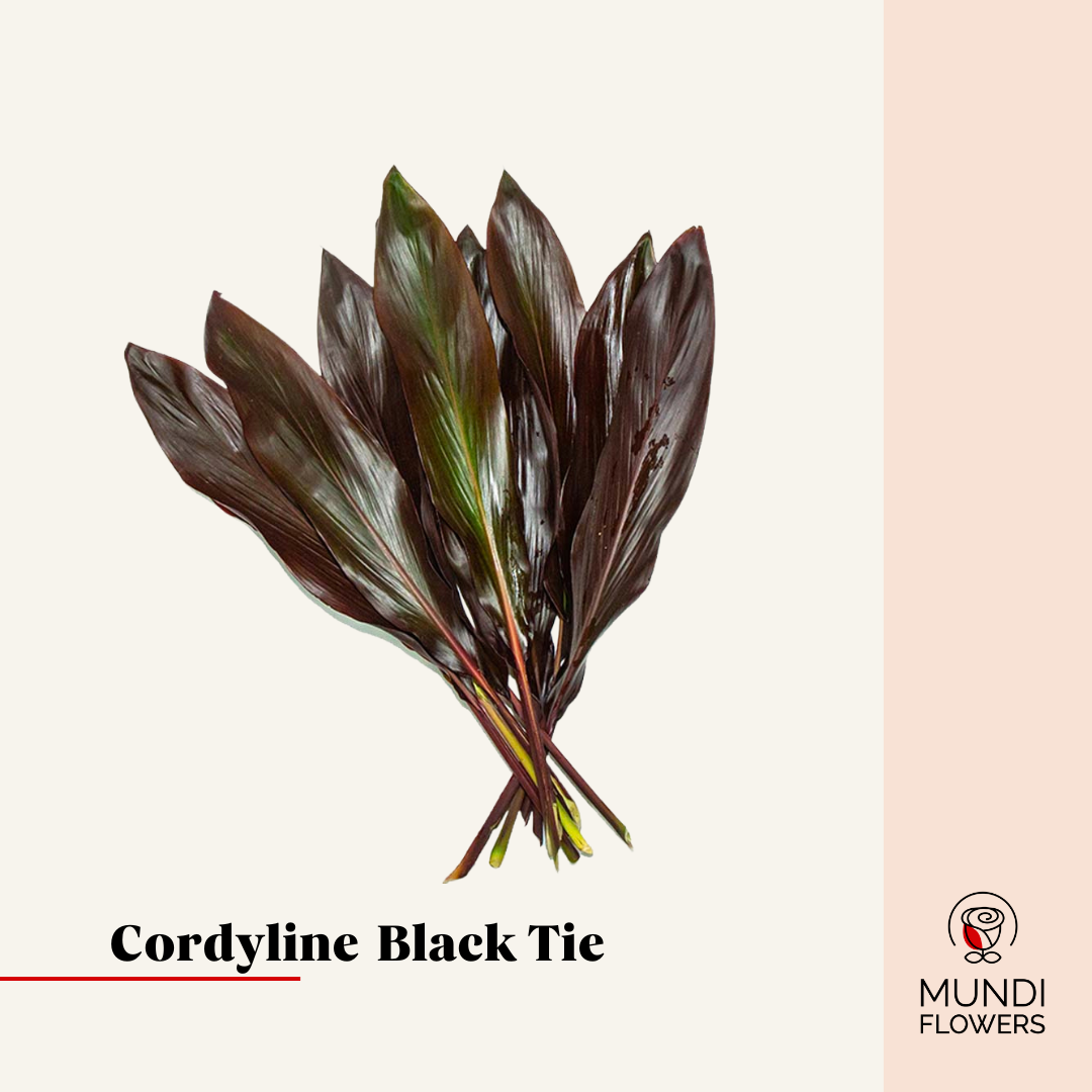 Cordyline 'Black Tie' is a stunning variety of the Cordyline plant, with long, narrow leaves in dark green, red, and purple hues.