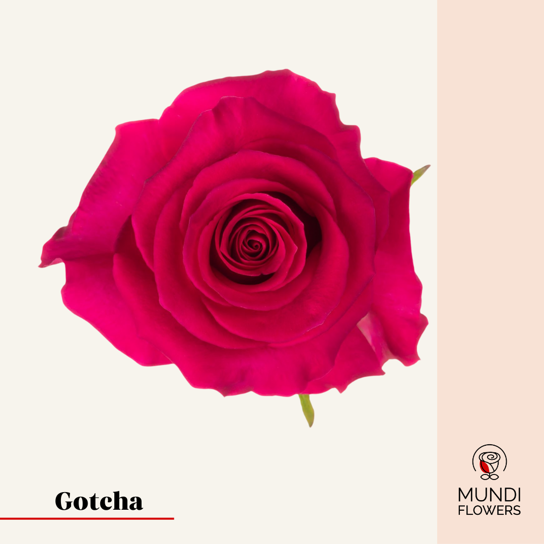 Introducing Gotcha, the stunning hybrid tea rose with a vibrant hot pink color and large, 5.7-6 cm blooms.