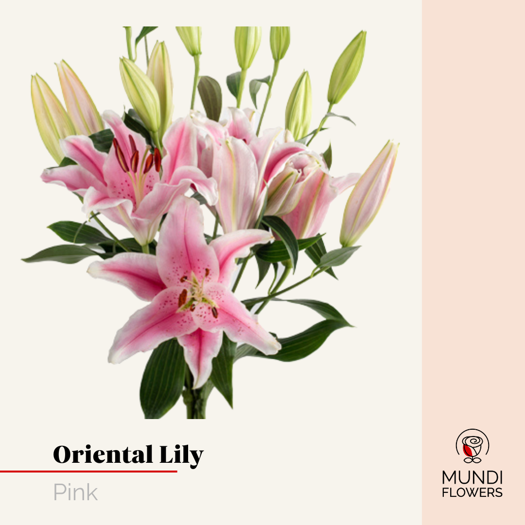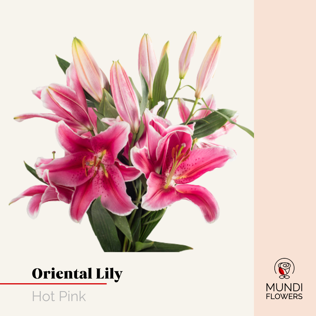 Oriental lilies captivate with their large, trumpet-shaped blooms in stunning shades of white, pink, crimson, and fuchsia.