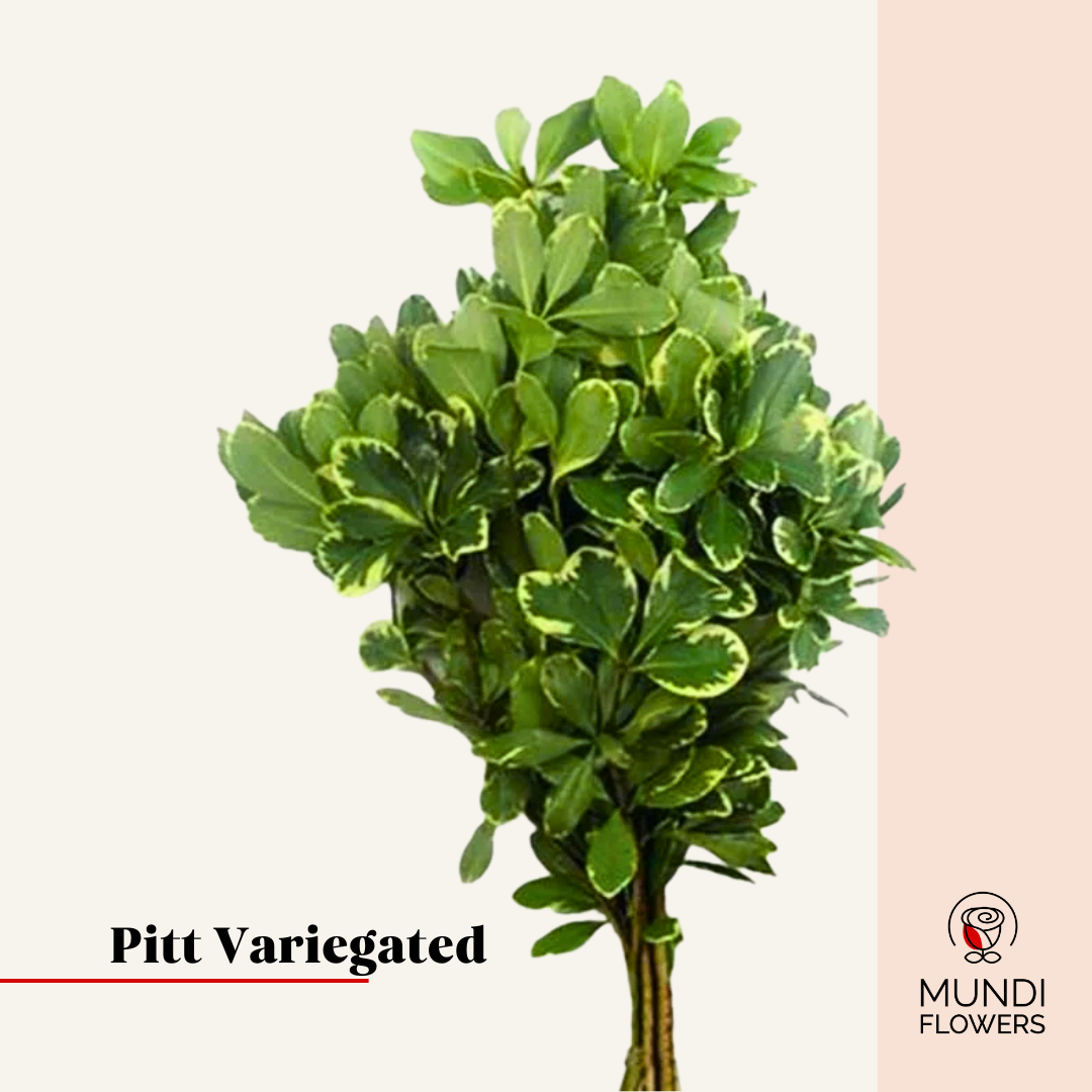 The Variegated Pittosporum, known as Pitt Variegated, brings elegant texture and vibrant contrast to any floral arrangement or garden.